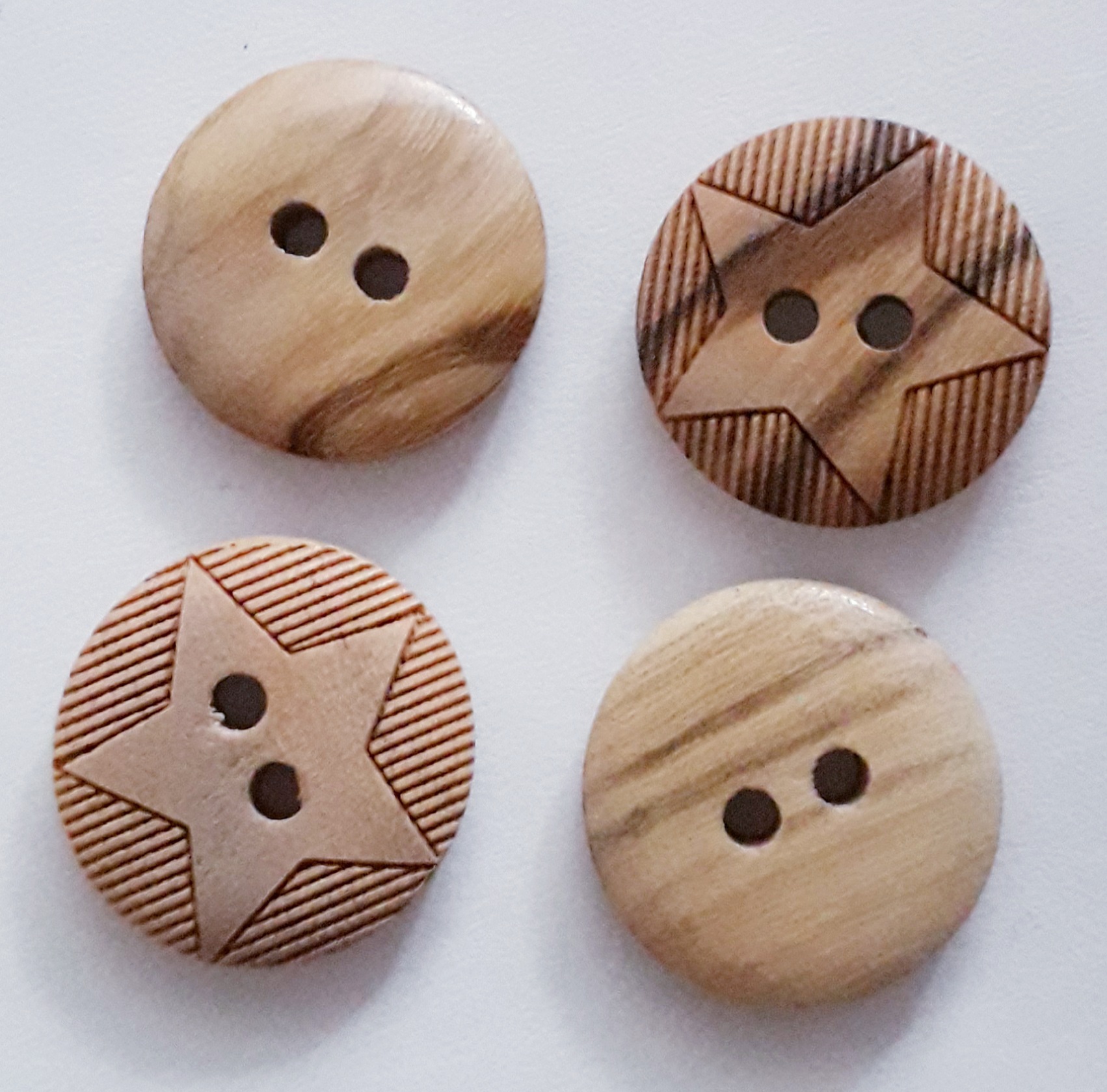 Holzknopf mit Gravur, bei 30 Grad waschbar.